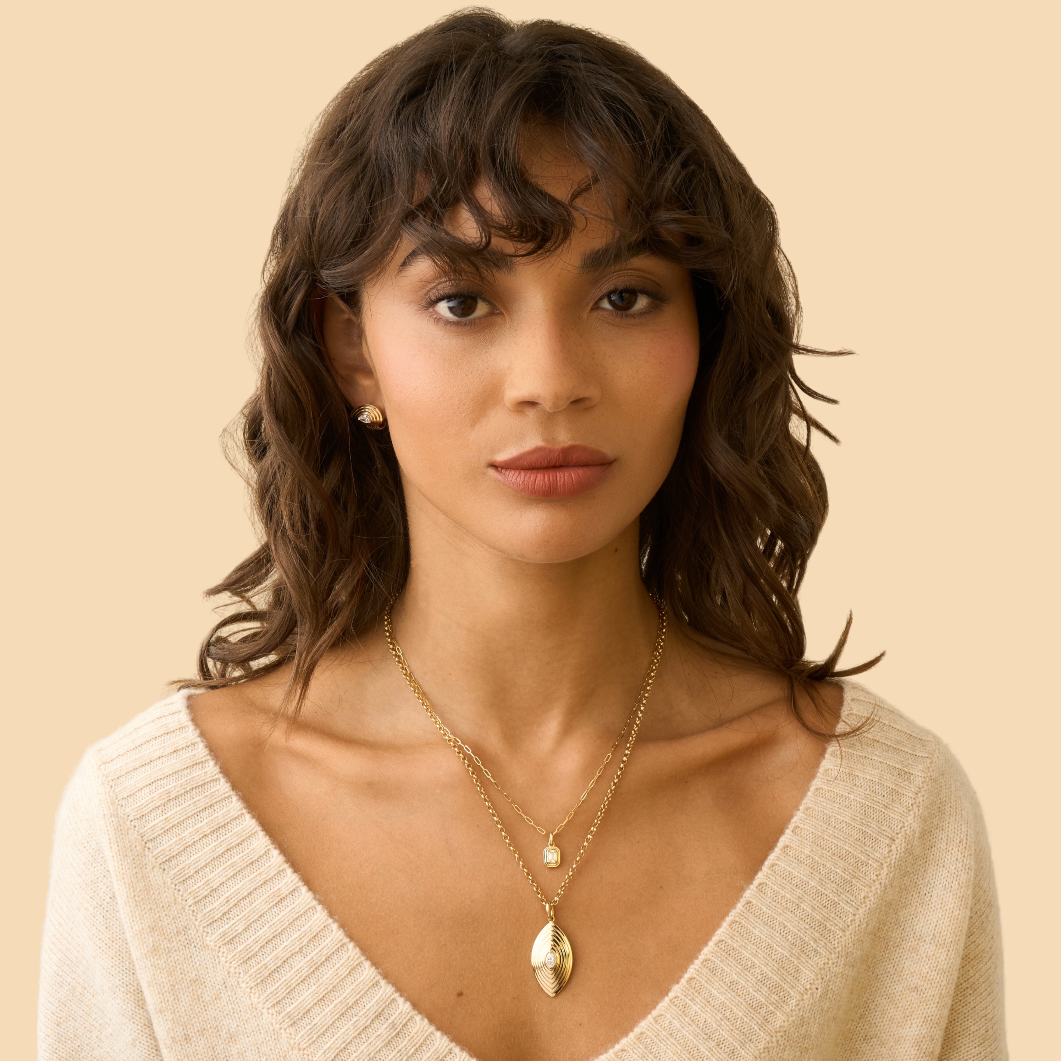 The Stories Collection showcases layers of high-polish gold, designed to reflect the unique journey of your life. Like the rings of a tree, each layer tells a story of growth and transformation. Crafted from layered 18k yellow gold, featuring GIA-Certified, pear-shaped, natural, colorless diamonds, and colored stones.